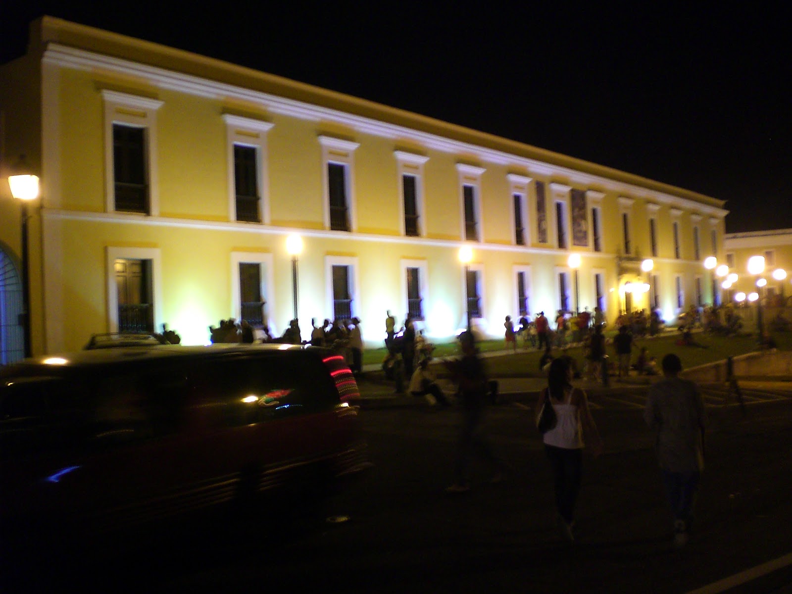 飯後,我們在Old San Juan縱橫交錯的街道上行走,四周的建築物很有西班牙的特色。晚上四周都是燈飾,在溫暖的天氣下,有些覺得冬天和夏天連在一起。再上一條街,就知道為甚麼找位子泊車是一件困難的事情。街上擠滿了人,而且酒吧林立而開啟。這就是當月的大型San Sestiban Party的前奏。我們從人多擠迫的街道,回到較為靜悄悄的街道,繼續留意周圍的建築物。即使在古舊的街道,麥當勞仍然能在這些有特色的建築物出現。