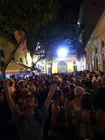 我和阿胡在這個行程已到達尾聲。當晚再回到Old San Juan走過,因為是San Sestiban的正日,會有壓軸的party。和第一晚一樣,我們的車泊了老遠,因為實在太多人了。我們走了不少地方,先從靜的開始,在剛天黑的時候走到一座堡壘。從前Old San Juan有一座城牆圍著,保護城市免被海盜侵襲。我們沿著城牆周走,漸漸從靜悄悄的街道走進熱鬧的人群。當晚攤檔林立,售賣不同食物。某位置有一座開concert的平台,有許多人聚在一起。除了食物,還有東西賣。亦有人作街頭表演。奇怪的是,不見得有許多飲酒的人在街上。