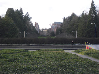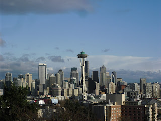 Then, we walked uphill in the Queen Anne area. Our goal was just to find geocaches before sundown, but we walked to an area that has a great scenery of Seattle downtown. There also seemed to be many tourists using their cameras.
