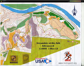 I did not get a chance to run on this map, but Jan and Alex did. I preferred staying with BC, who came to Ann Arbor for orienteering, but got sprained ankle the day before the trip and only visited his friends as a result. The map above is how Jan ran (sort of, I do not know what's wrong with the GPS).