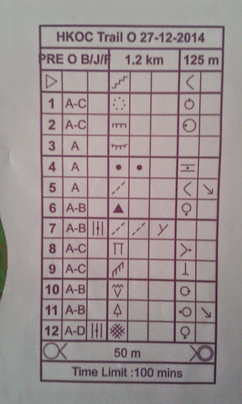 After understanding the rule, the controls could then be viewed. "From the left, this is A, B, C, and D (with finger pointing)". Officially, the official will say "alpha, bravo, charlie, and delta", but since these words may confuse kids, ABCD were used. Immediately after finger pointing, the official said, "your time starts now", and the map (with the control description) was uncovered.