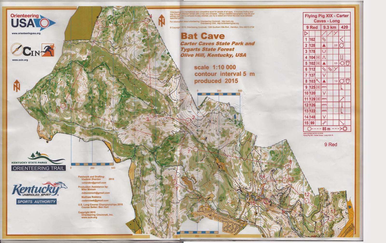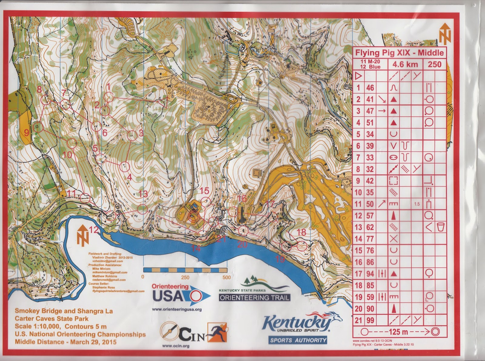 Flying Pig overlapped with spring break, so we can participate the full event. I tried to register as many the same courses as Alex, so that we could compare our results. It turned out that we could compare the sprint and middle courses. On March 26 (Thu), we drove 6 hours to Carter Caves State Resort Park, KY.