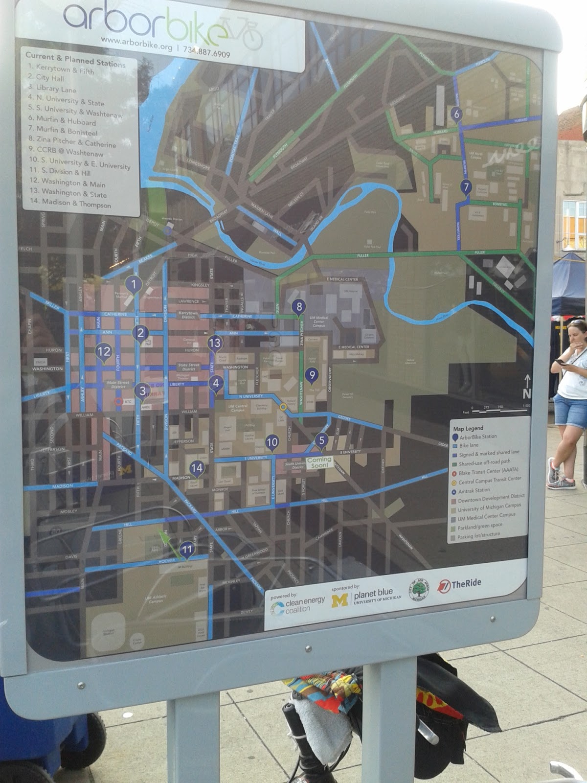 A happy change in the last few years is that Ann Arbor has its bikeshare stations: