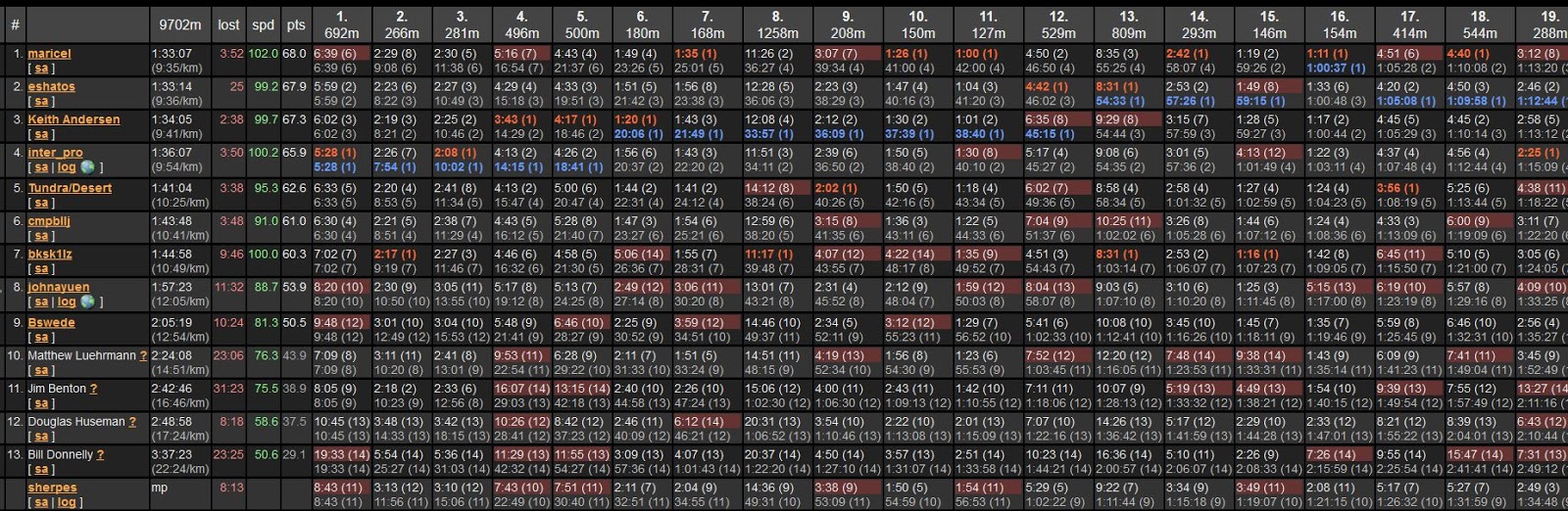 I was slow (88.7% from the fastest), and I made a lot of errors (~11 min total). From the race result last year in AttackPoint. |