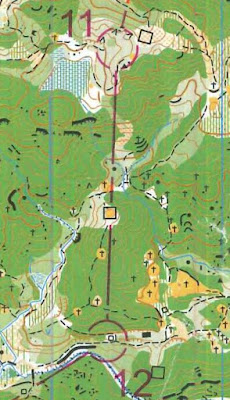 Then, to #12, I could not resist my urge to do cross-country, like how I did more in the US. I considered the safe trail route (blue line, right map below), but I was also curious if the course setter was aware of the route that I chose, and checked this route properly. The route that I used may not be too slow, since there was no need to go back uphill, and the route was direct. By comparing the unmarked map on the left and the marked map on the right below, I think I followed the intended route. My thought: the last 1/3 of that open land strip was fine, but the beginning 2/3 took me a lot of time to pass through.