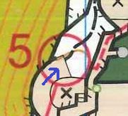 Control #3 started to get difficult. This control tests the height judgement. The contour is the best hint. The key is to realize that the contour in the map extends to the opening of hedges next to the stairs. Thus, from the opening, if the flag can be seen horizontally, that flag is likely to be correct.