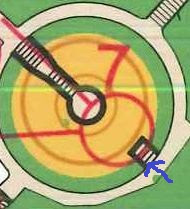 Blue arrow shows the viewing location and direction. Red circles are the questions. In the competition, the viewing direction is always pointing upwards. |
